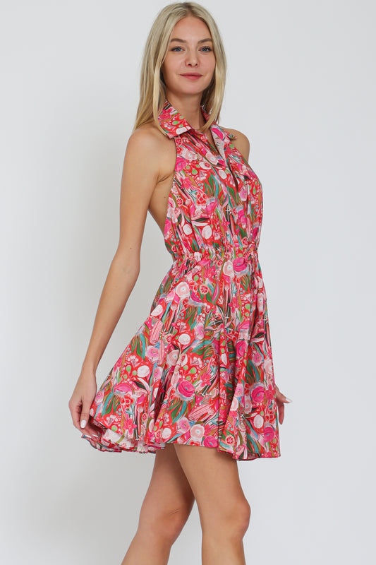 Halter Backless Fuchsia-Red Mini Dress