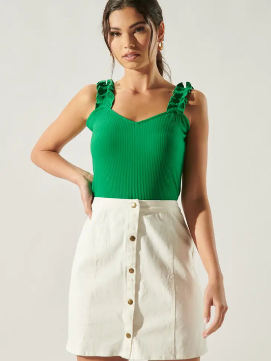 High Roller Ruffle Strap Ribbed Knit Tank